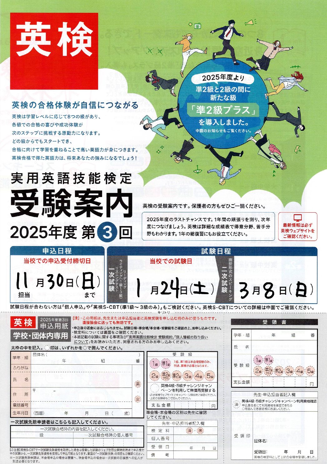 2025年度第3回英検準会場受験は 2026年1/24(土) …