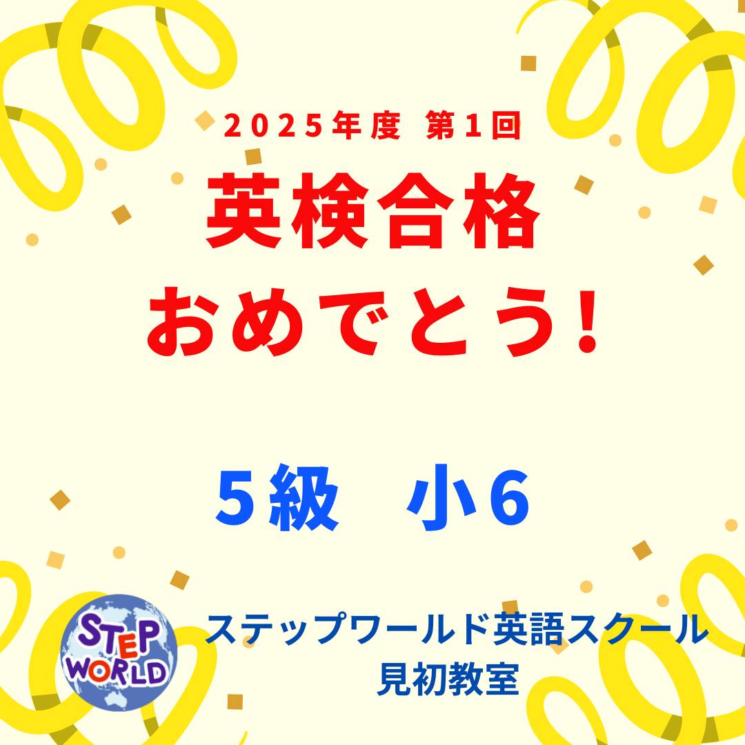 英検合格おめでとう! 投稿日: 投稿者: 教室 🎉✨英検5級 合格おめでとう✨🎉 初めての英検受験でしたが、落ち着いていつもどおりの実力を発揮できました💮 ✏️⋆⁺₊⋆✏️⋆⁺₊⋆✏️⋆⁺₊⋆✏️⋆⁺₊⋆✏️⋆⁺₊⋆✏️⋆⁺₊⋆✏️⋆⁺₊⋆✏️⋆⁺₊⋆✏️⋆⁺₊⋆✏️⋆⁺₊⋆ 📩お問い合わせ、お申込みはDMでお気軽にどうぞ 教室HPお問い合わせフォームからもご質問、お申込み可能です