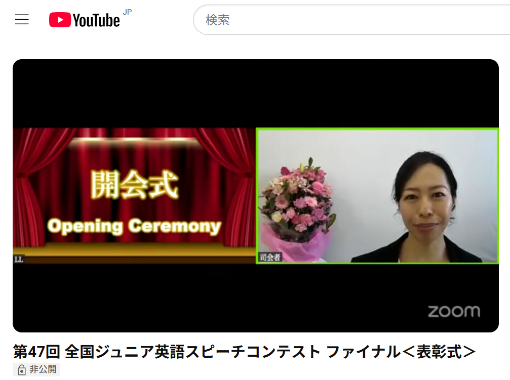 第47回全国ジュニア英語スピーチコンテスト・ファイナルが12月22日(日)に開催され、Masters Division幼児1名、小学生14名、中学生5名(計20名)がzoomによるオンライン表彰式に参加しました。