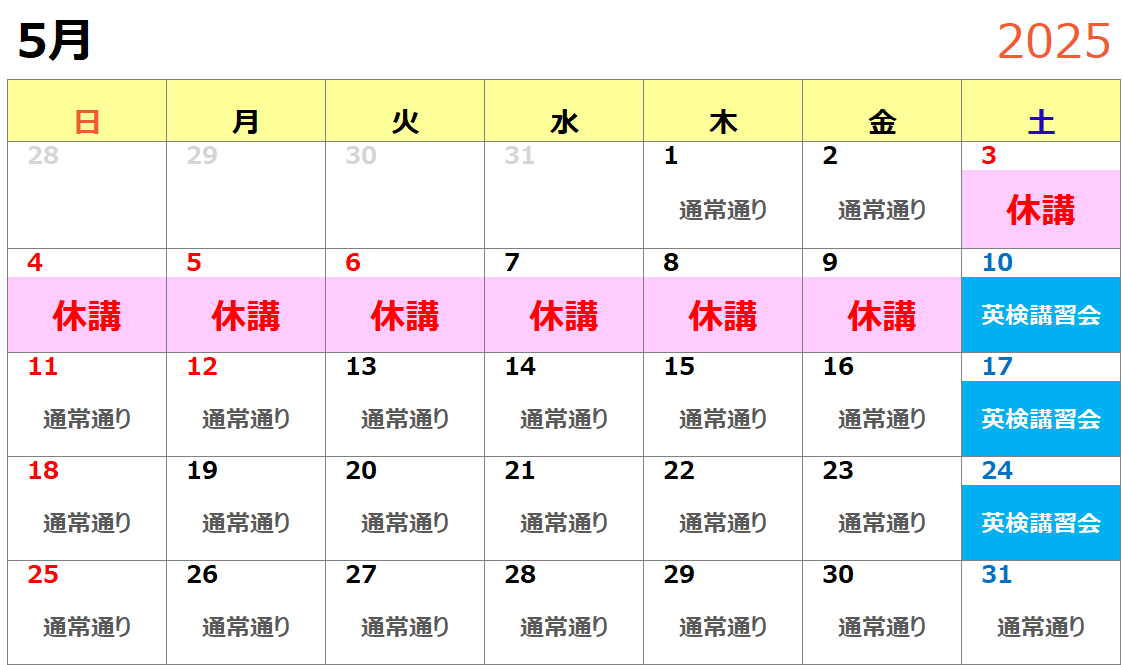 2025年5月スケジュール